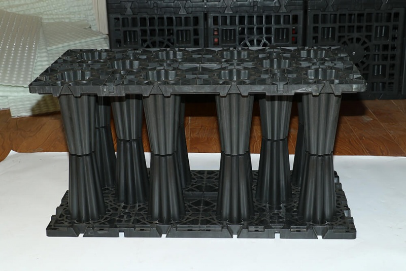 防排水保護(hù)板獨(dú)有的凹凸中空立筋結(jié)構(gòu),可以有效快速的導(dǎo)出地下防水層積水,地下滲出的水順著地下架空層排水板的空間將水引流至四周盲溝,再通過盲溝后引流至集水坑。從而大大的減少甚至消除了防水層的靜水壓,通過這種主動(dòng)導(dǎo)水的原理達(dá)到主動(dòng)防水的效果。有效的保護(hù)構(gòu)筑物和防水層,并且抵抗土壤中的各種酸堿和植物的根刺還有防潮降噪的功能。對土建施工周期及構(gòu)筑物的正常使用和壽命具有重要的作用。